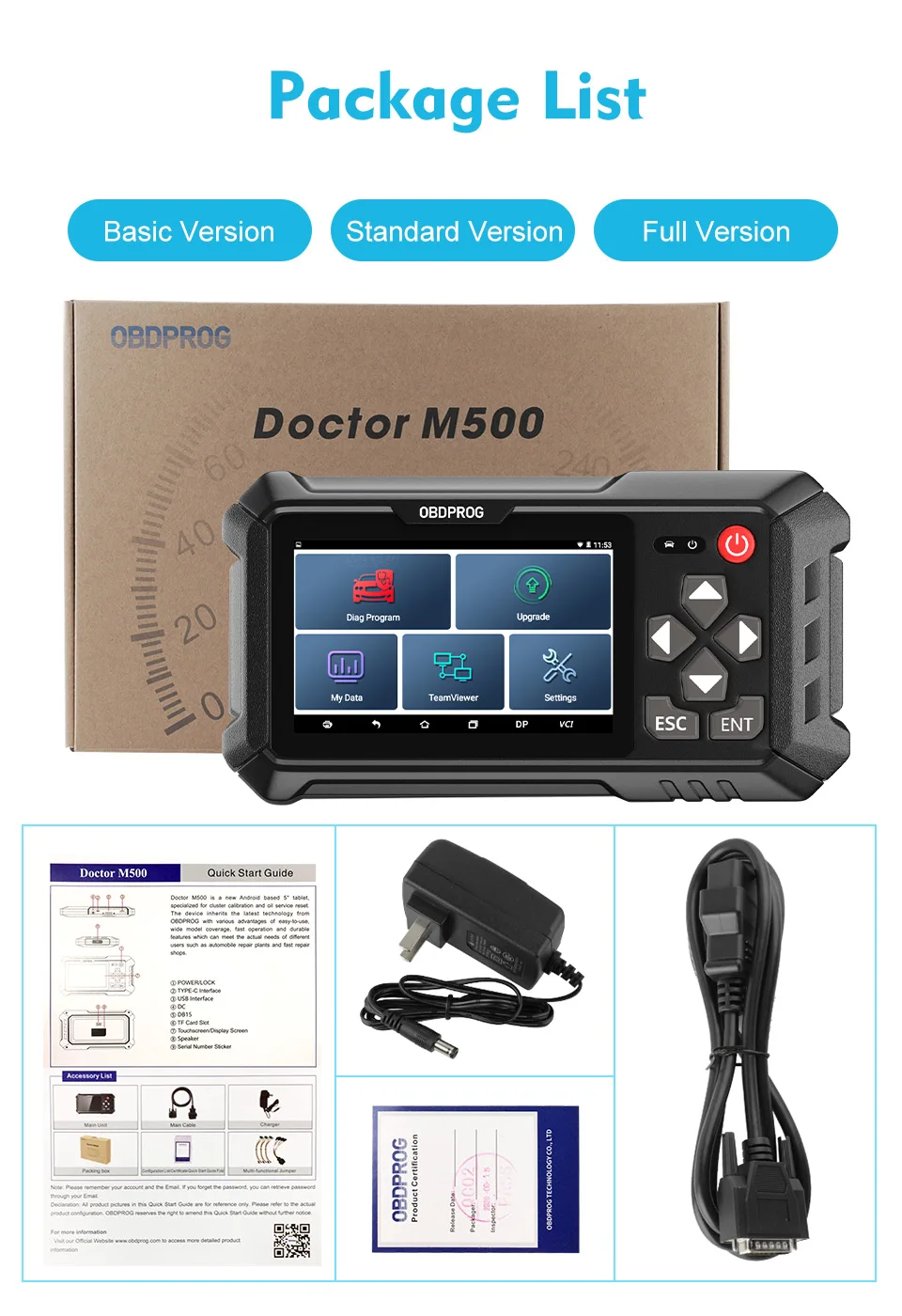 OBDPROG M500 Поддержка программного обеспечения автомобиля напылением Упаковочный лист: