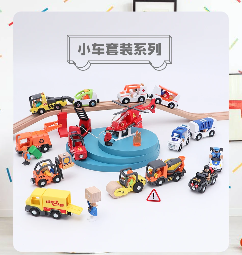 Новый Деревянный Железнодорожный трек, пожарная машина, магнитный поезд, литая машина, совместимая с рисовым Кроликом, вагоном Brio, деревянный поезд, трек, игрушки