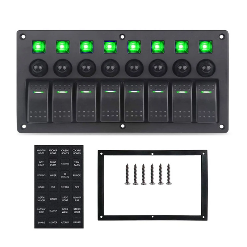 8 банд переключатель Панель Авто Лодка морской двойной светодиодный кулисный переключатель Панель 12V ~ 24V автоматические выключатели тумблеры высокое качество