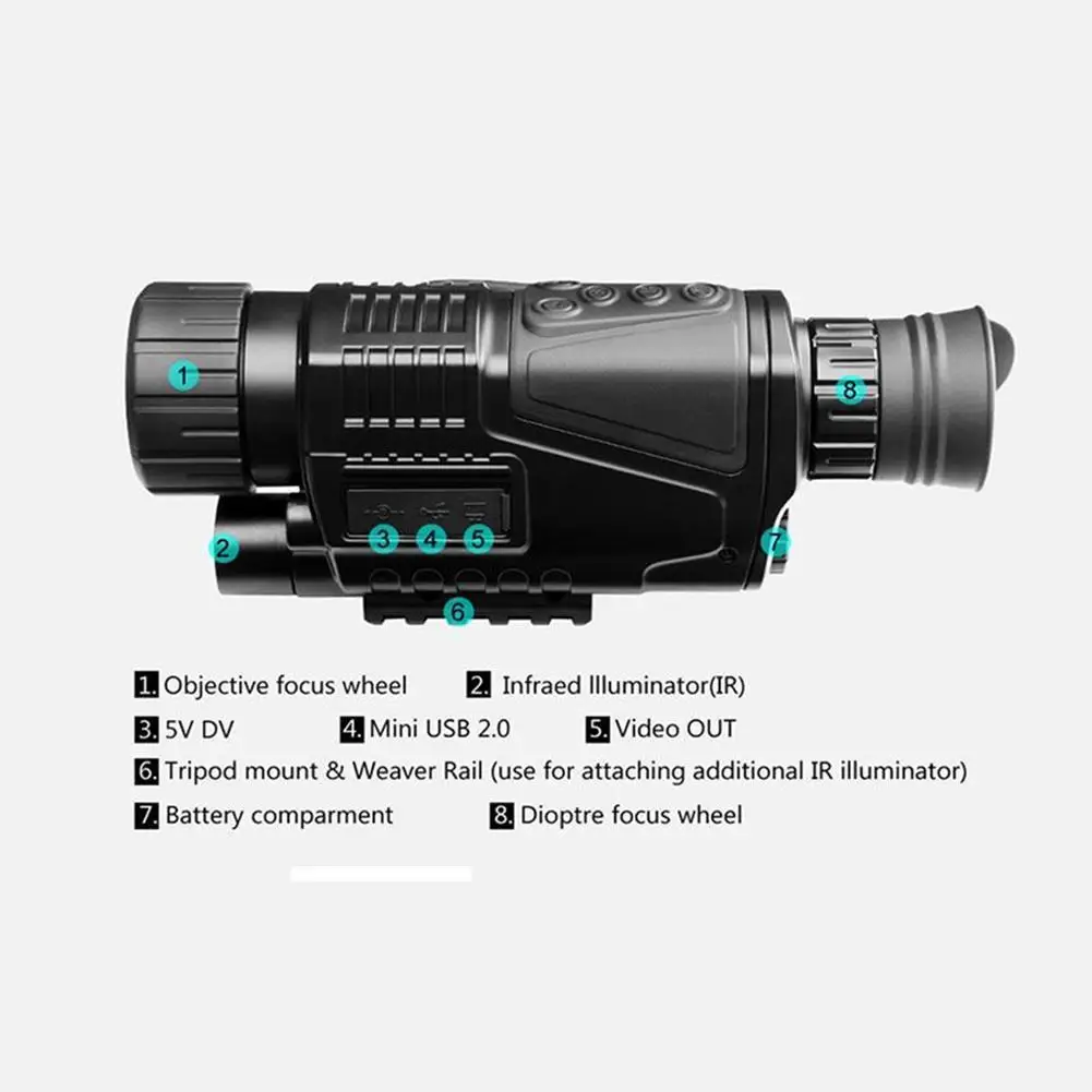 The night vision monocular can be used in complete darkness or low light situation. It achieves 5X optical zoom and 8X digital zoom. It is a perfect optical device to enhance human/'s visual senses.