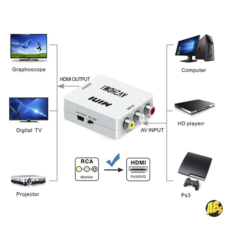 — входной порт HDMI (мама), выходной AV RCA (желтый, красный и белый провода);