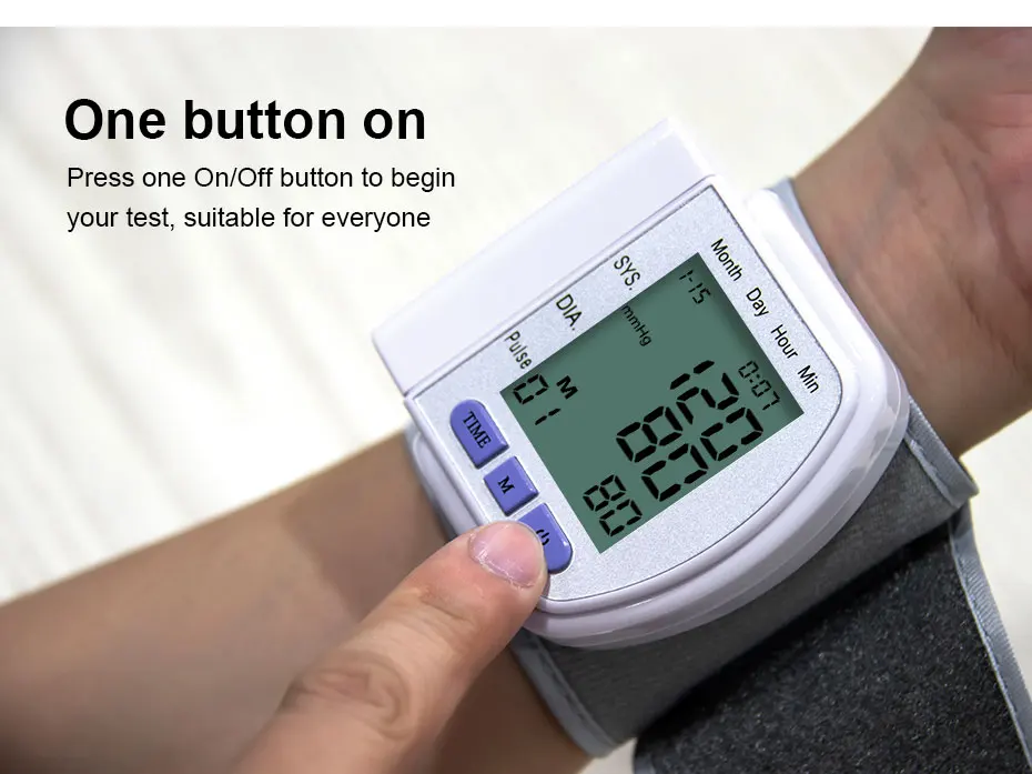 Автоматический прибор для измерения артериального давления на запястье цифровой тонометр Сфигмоманометр измеритель сердечного ритма Тензиометр Tansiyon Aleti 1. Автоматическое измерение. 2. Память хранилища 90 групп память ценится родителям каждой группы. Отображение последних трех средних измерений. 3. Последовательно запрашивайте данные памяти. 4. ЖК-дисплей HD: Отображение данных хорошо видно. 5. Работа автоматически выключается в течение 1 минуты без работы. 6. Точность измерения артериального давления: просто быстро и точно. 7. Аритмия сердечного ритма подсказывает эффективное darly предупреждение о проблемах сердца. 8. Маленький, удобный для переноски. 9. Источник питания: аккумулятор (не входит в комплект)