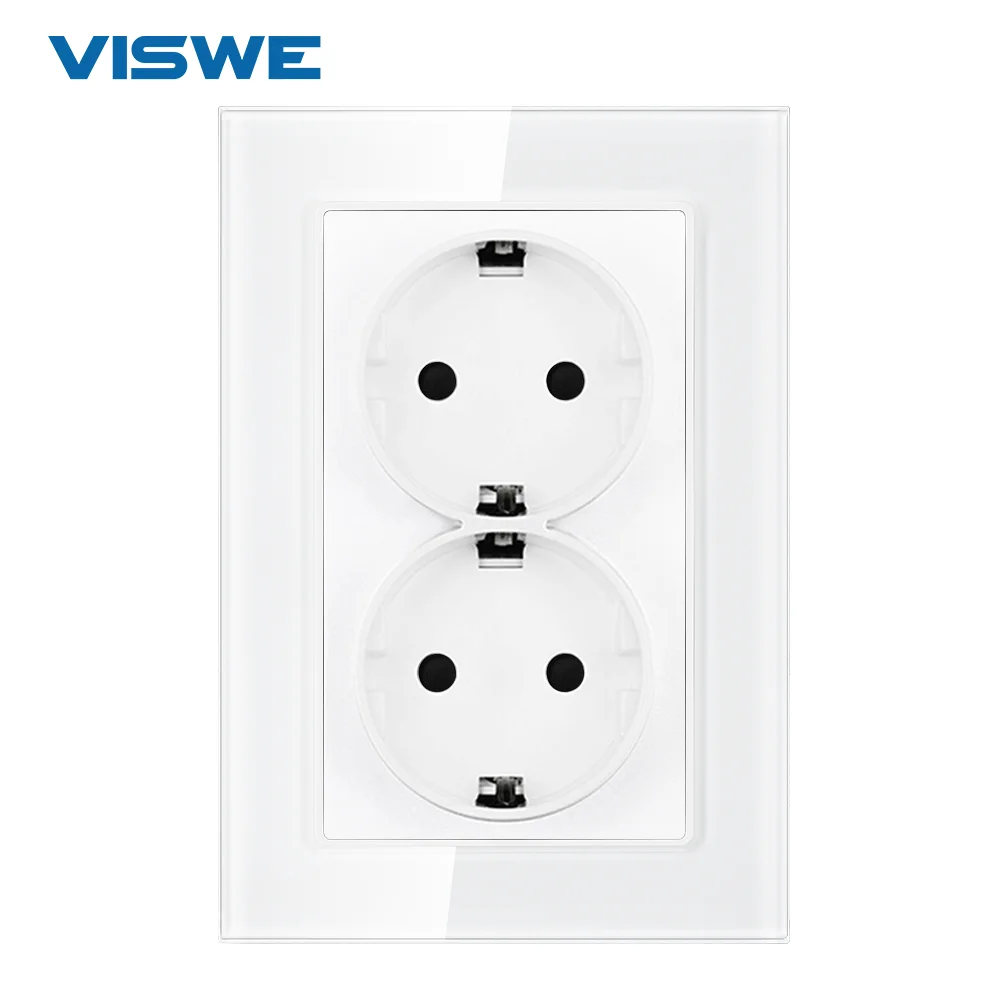 Европейская розетка VISWE, белое Хрустальное стекло, 110-250 В переменного тока, настенные силовые точки с вилкой, двойная розетка ЕС 16 А