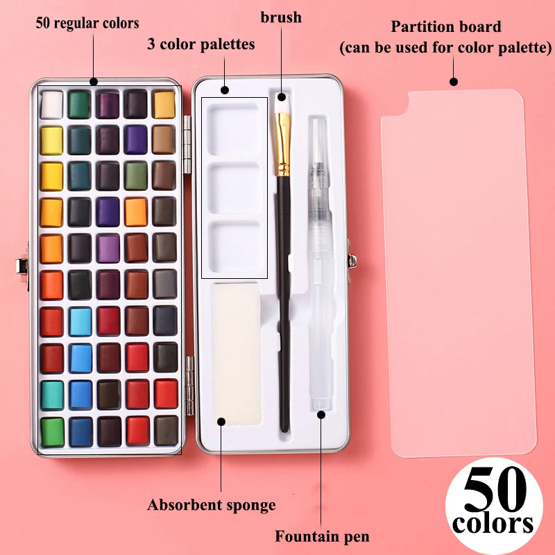 50/72/90 цветные сплошные акварельные краски в наборе Набор цветных красок портативная металлическая коробка водный цвет пигмент для начинающих Рисование водные цветные бумажные принадлежности