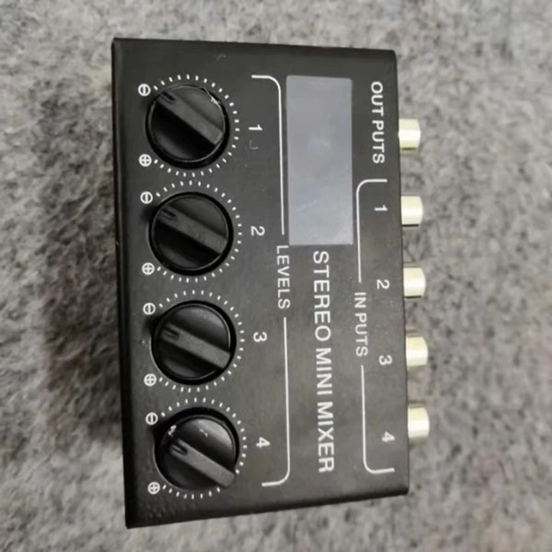 Мини пассивный стерео микшер-это стерео четырехполосный пассивный Миксер для расширенной настройки управления, микшерного инструмента, cd-плеера, ленточного проигрывателя, компьютера, мобильный телефон, планшет и так далее. Аккумулятор или другой источник питания не требуются. Устройство также может быть использовано как 1 в 4 стерео распределитель по часовой стрелке для регулировки громкости.
