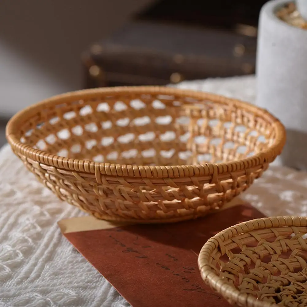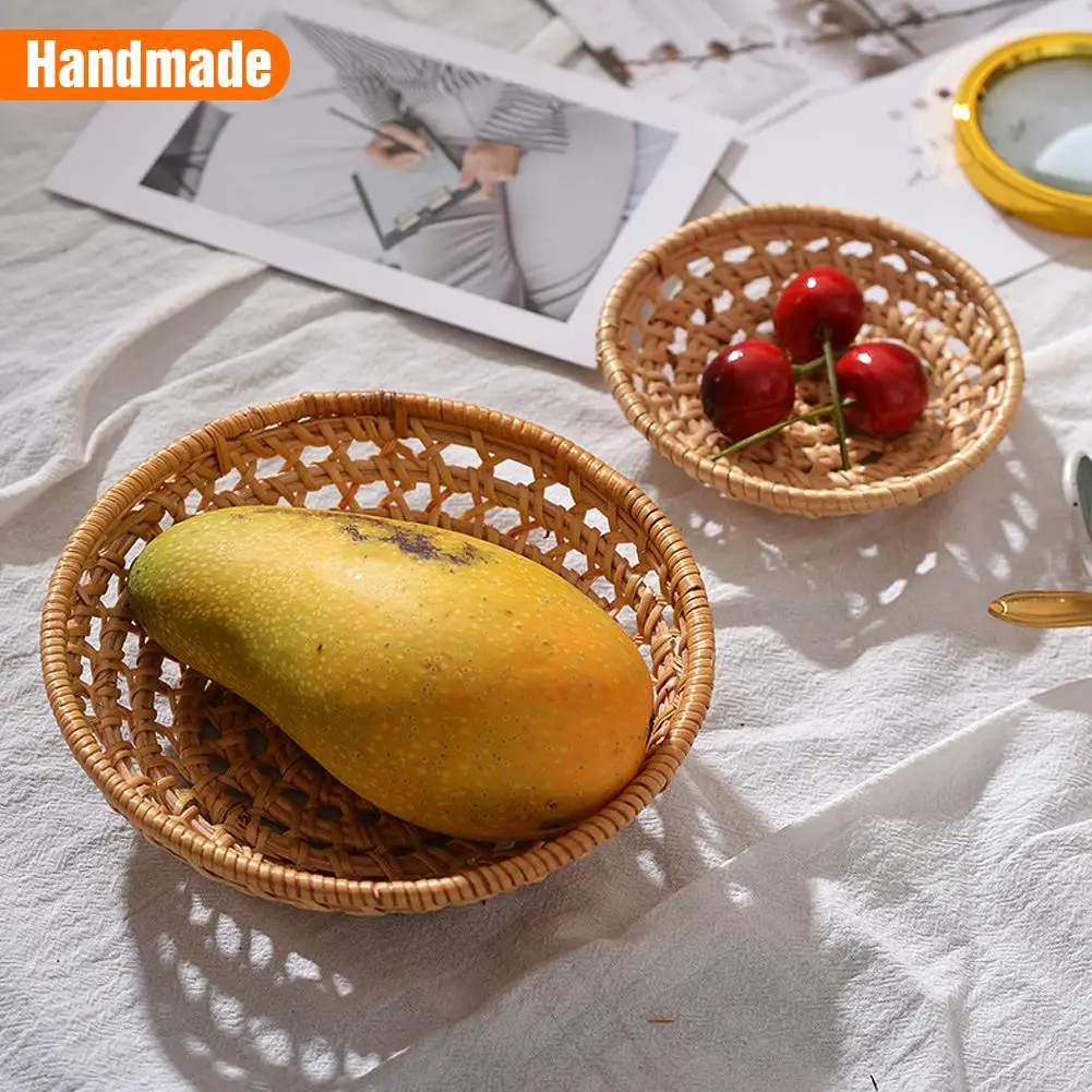 Корзина для хранения фруктов ручной работы дикая ротанговая чаша для хранения прочная натуральная миска для закусок для дома или офиса, Декоративные Фотографии
