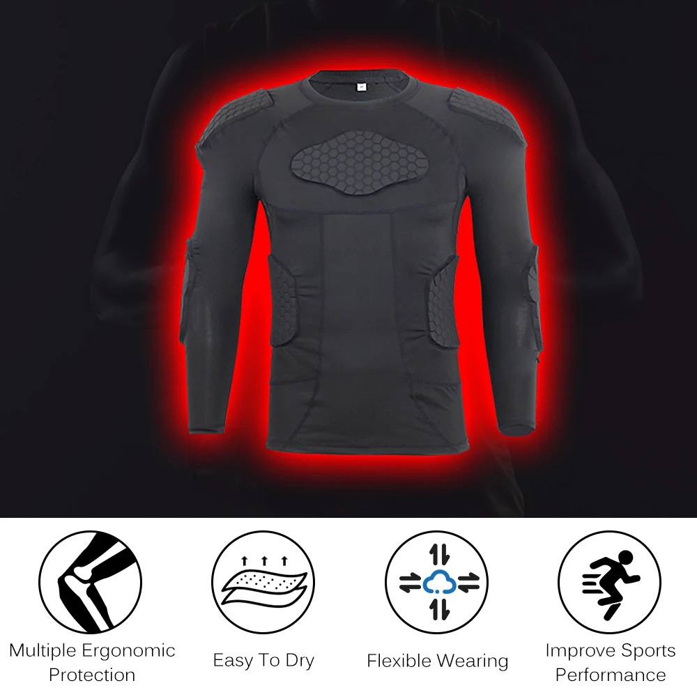 Эта стеганая компрессионная рубашка с несколькими уплотненными поролоновыми подушечками EVA толщиной 10 мм/0,4 дюйма эффективно замедляет и равномерно рассеивает воздействие, что обеспечивает максимальную защиту без ограничения motion! Идеально подходит для футбола, баскетбола, футбола, бейсбола, сноуборда, катания на лыжах и всех других видов спорта.