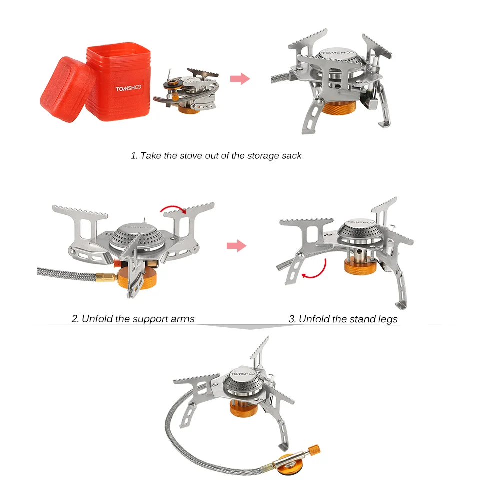 TOMSHOO Кемпинг плита включает в себя складной газовая плита, 9-пластина лобовое стекло и газовый баллончик конвертер. Идеально подходит для кемпинга на открытом воздухе, пеших прогулок, альпинизма, пикника и т. д.