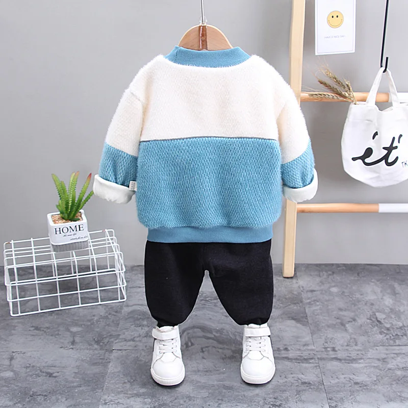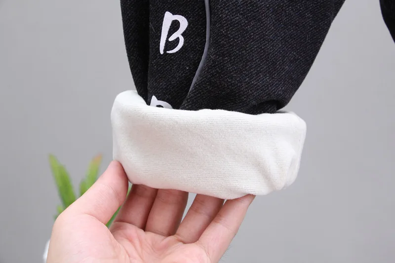 Осенне-зимняя детская модная утепленная одежда пальто с буквенным принтом для маленьких мальчиков и девочек, штаны 2 шт./компл., детская одежда для младенцев Повседневная Спортивная одежда для От 0 до 4 лет