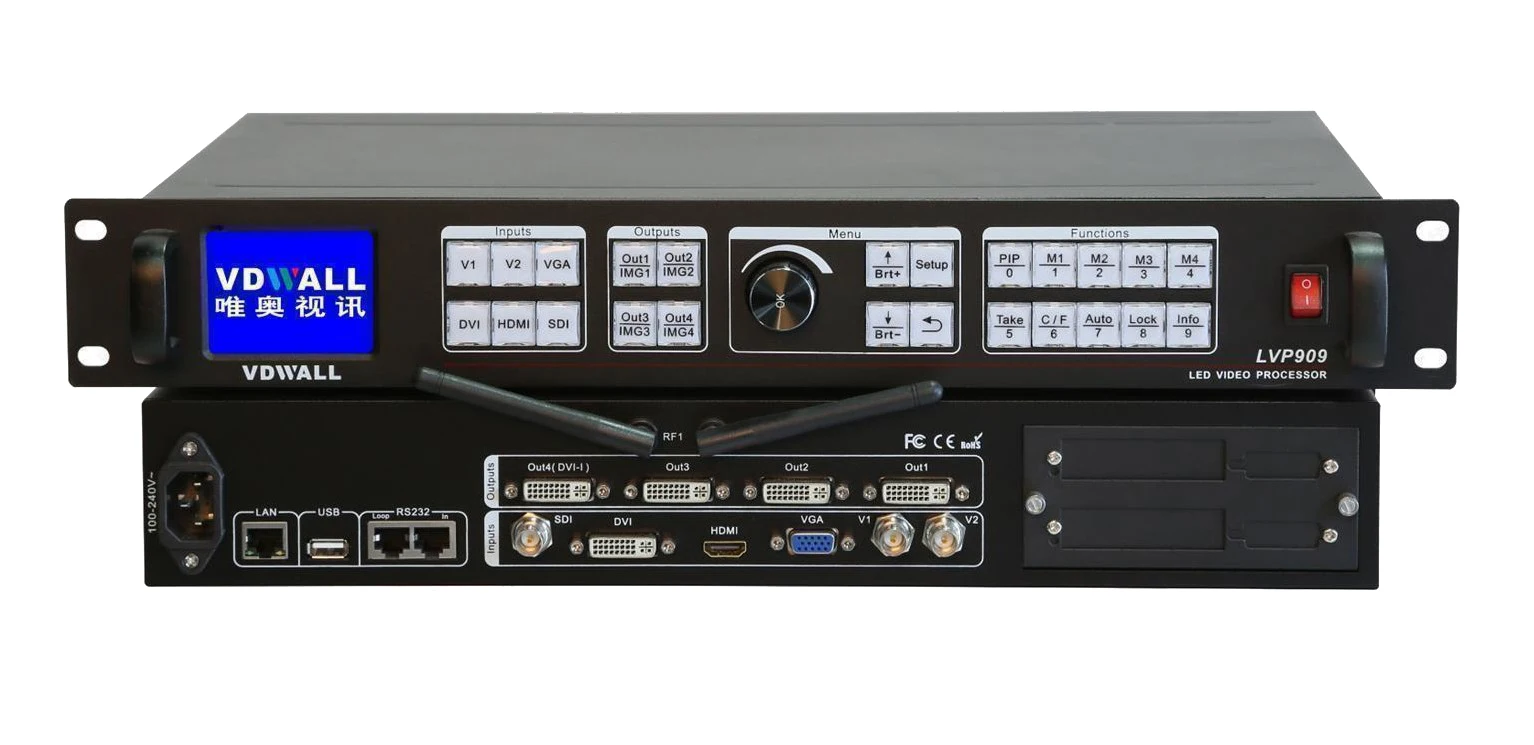VDWALL LVP909F светодиодный HD видеопроцессор 1 DVI in 4 DVI out Wi-Fi управление и видео макс. 3840x2400 4 окна любого размера