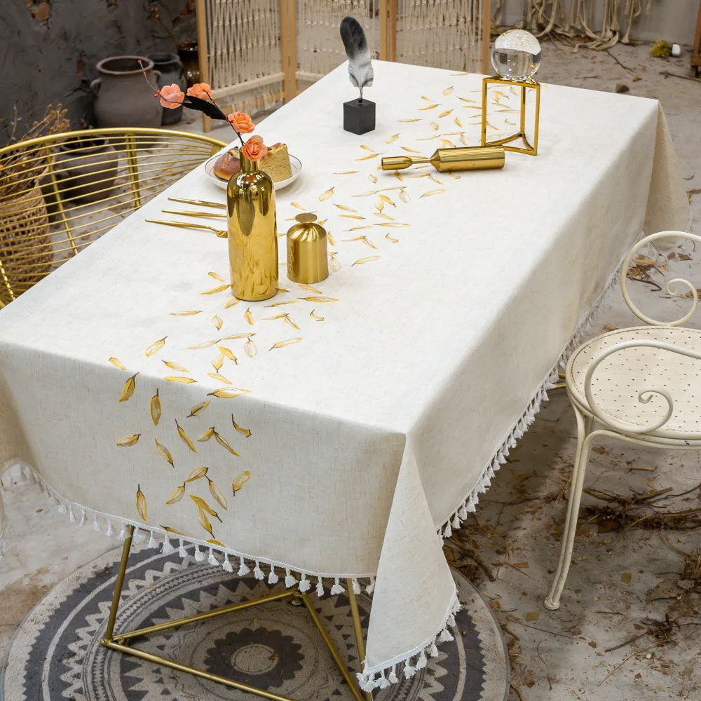Хлопковые льняные скатерти с деликатной вышивкой и красивыми бахромой по краям. Добавьте элегантность в свою комнату, защищая и украшая ваш стол, делая вашу еду более приятной