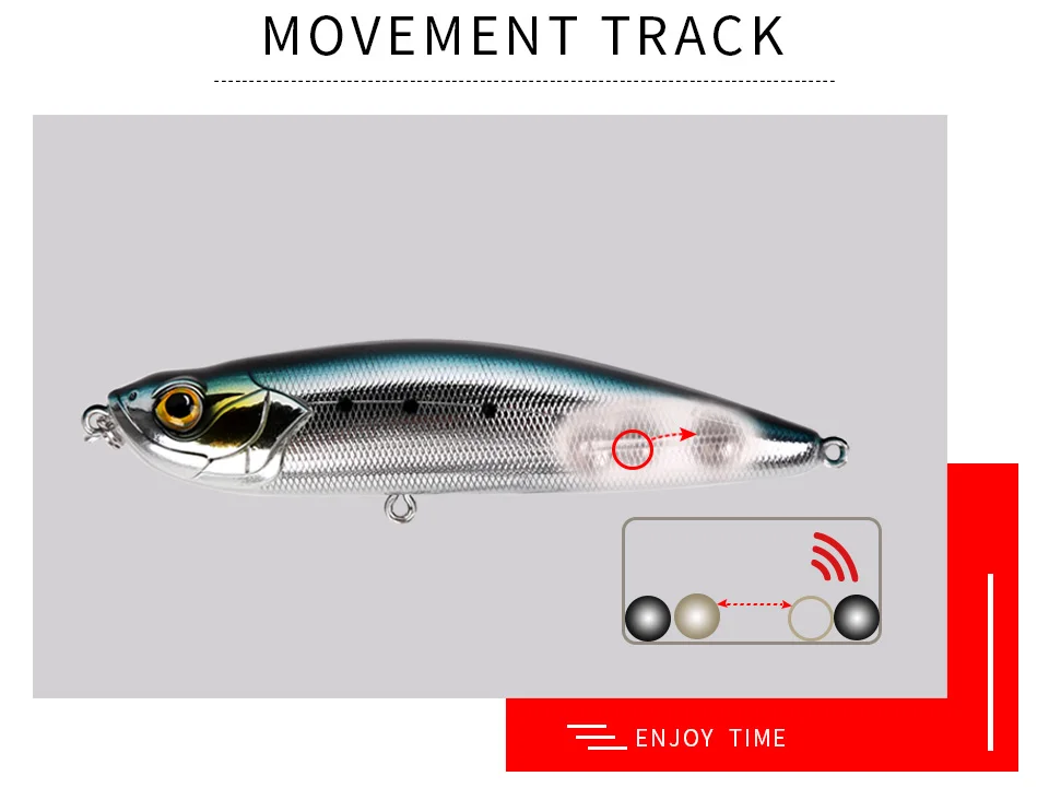 Kingdom Sea Fishing Lures Floating and Sinking Pencil Lure 10mm Artificial Quality Professional Hard Stick Bait fishing Wobblers The KINGDOM lure is a short compact surface lure which can be deadly particularly on those difficult flat calm days. It has a subtle sliding action and responds very well to angler input. It is a classic 'walk the dog' lure which works well when fished nice and slow. It is also good with a steady pull, pause retrieve which makes it imitate a bait fish trying to sneak away across the surface. If the fish are feeling inclined to chase a lure then a faster retrieve will get the lure dart and dancing across and just below the surface. Being compact means that it casts really well allowing you to full cover the water in shallow, sheltered weed and fish filled bays or when working along the coastline. It has a superb finish and Built-in ball and two VMC Hooks Features: 1. Hooks: High Quality VMC Hook Has Stronger Penetration 2. Simulation Fish Skin : special laser line to attract more fishes, UV coating to avoid scratch 3. Tungsten Balls: Tungsten balls inside, to keep balance of the fishing Lure, for the furthest distance casting.sound waves are produced in the twitch 4. Stronger Bicyclic Rings: Strengthen the double circle increased resistance to pull. 5. 3D Fish Eyes: 3D simulation eyes, big and bright, more tempting reflective better. 6. Product packaging: Each bait is packed in nice retail box.