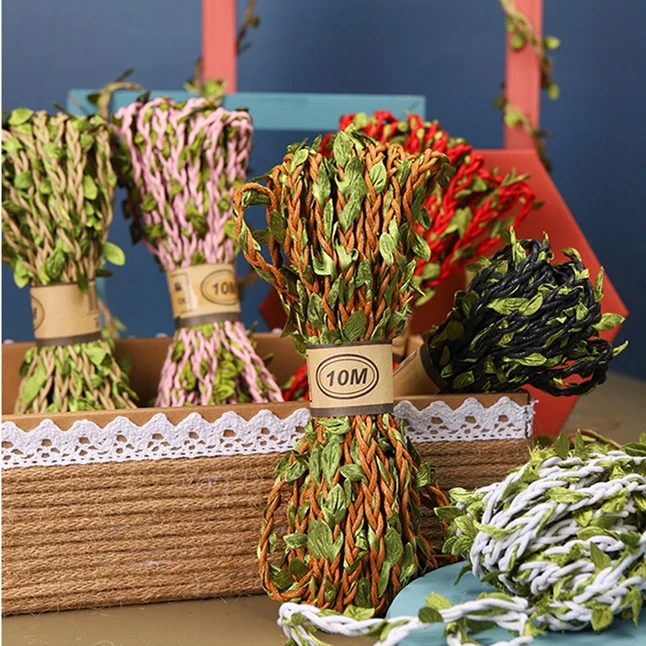 🎄Посылка: 1 пучок лист веревочные 100% новый и высокое качество 🎄Размеры: 10 м * 1,5 см 🎄Материал: восковая веревка + ткань 🎄Цвет: коричневый, красный, розовый, черный, белый, дерево 🎄Использование: ручная работа, декорация фона, сделай сам