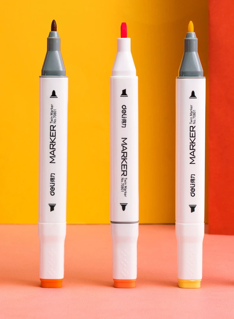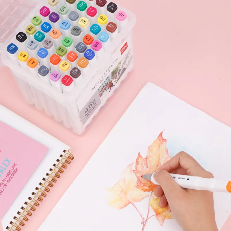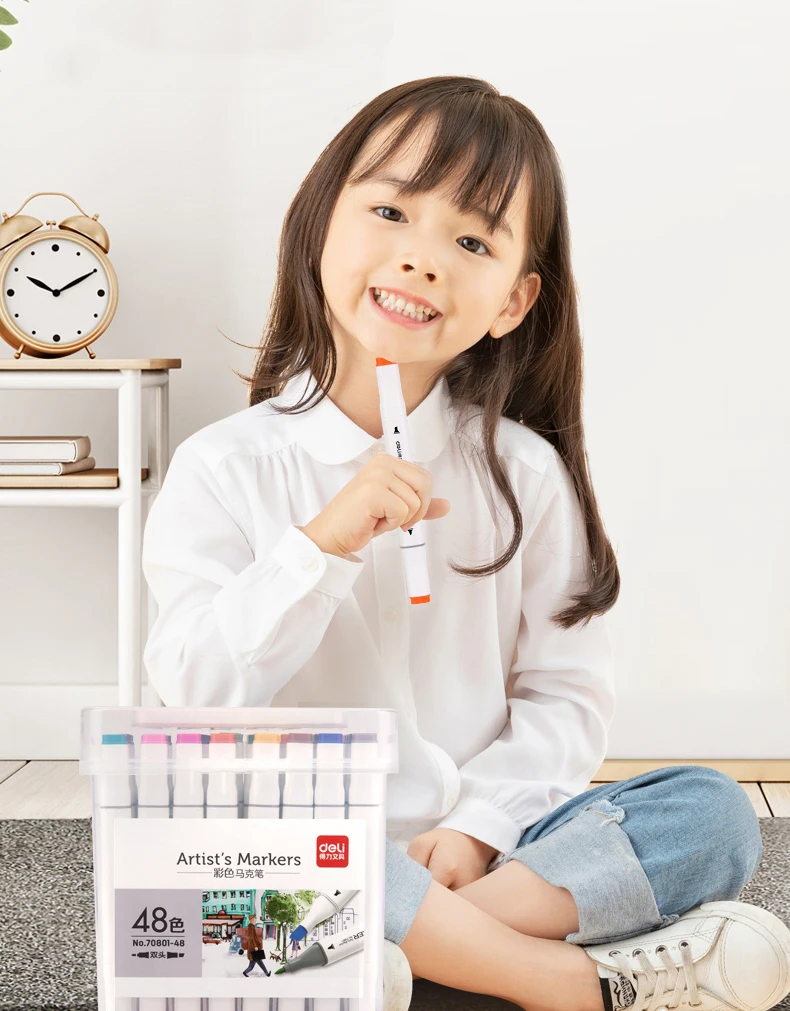 Deli 12/24/36/48/60/80 Colors Dual Tip Art Marker Pens Fine Liner Markers Watercolor Drawing Painting Pen Brush School Supplies