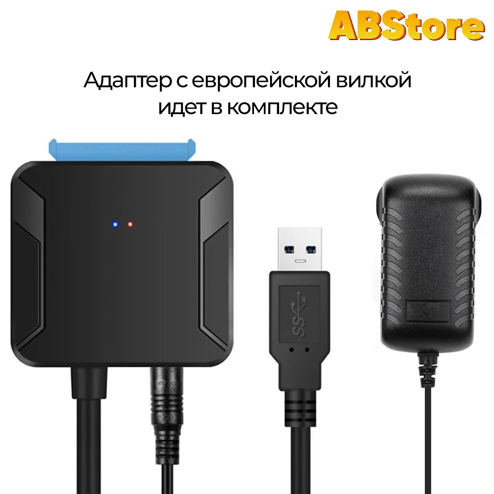 Адаптер позволяет подключать как маленькие накопители (SSD или HDD 2.5 от ноутбуков), так и большие HDD 3.5.