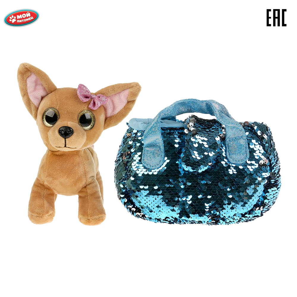Мягкая игрушка «Собачка» ТМ «Мой питомец» с модной голубой сумочкой в комплекте станет отличным подарком для девочки.