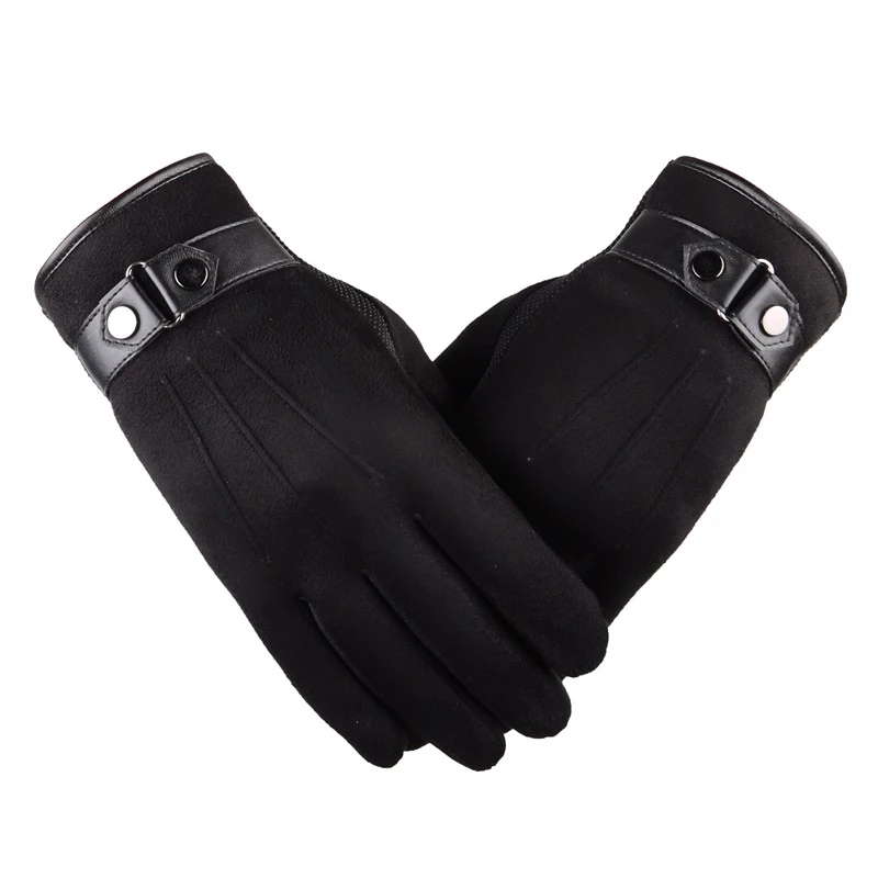 Противоскользящие мужские перчатки с сенсорным экраном, мотоциклетные лыжные варежки с пряжкой, мягкие перчатки на весь палец, 1 пара, искусственная замша