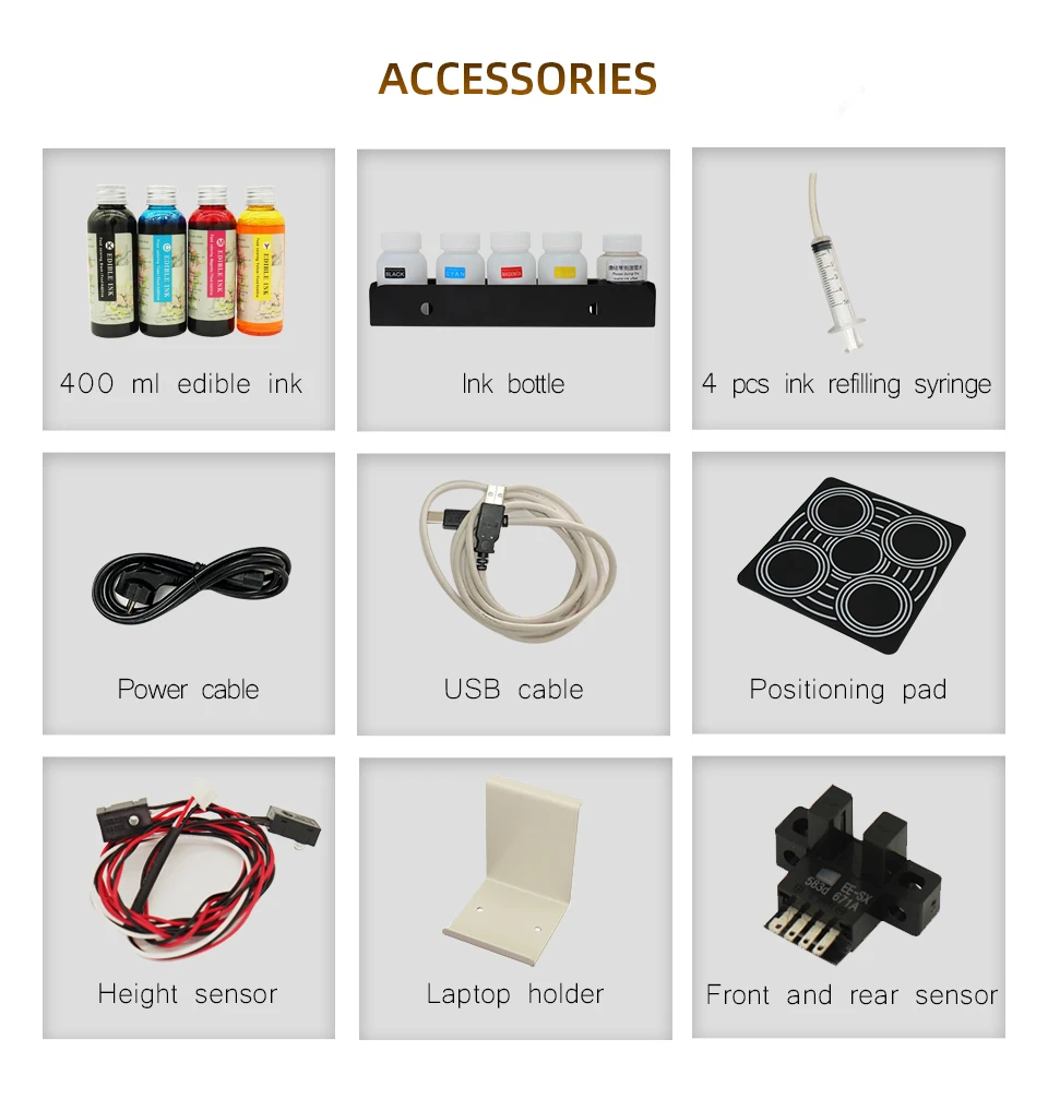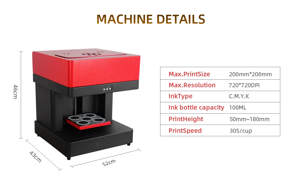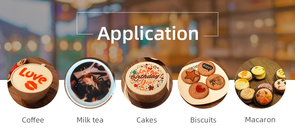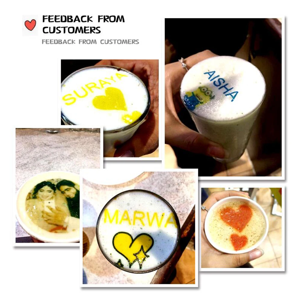 3. Съедобные чернила: безопасная низкая стоимость: 4*100 мл чернила могут напечатать около 2000-3000 чашек кофе