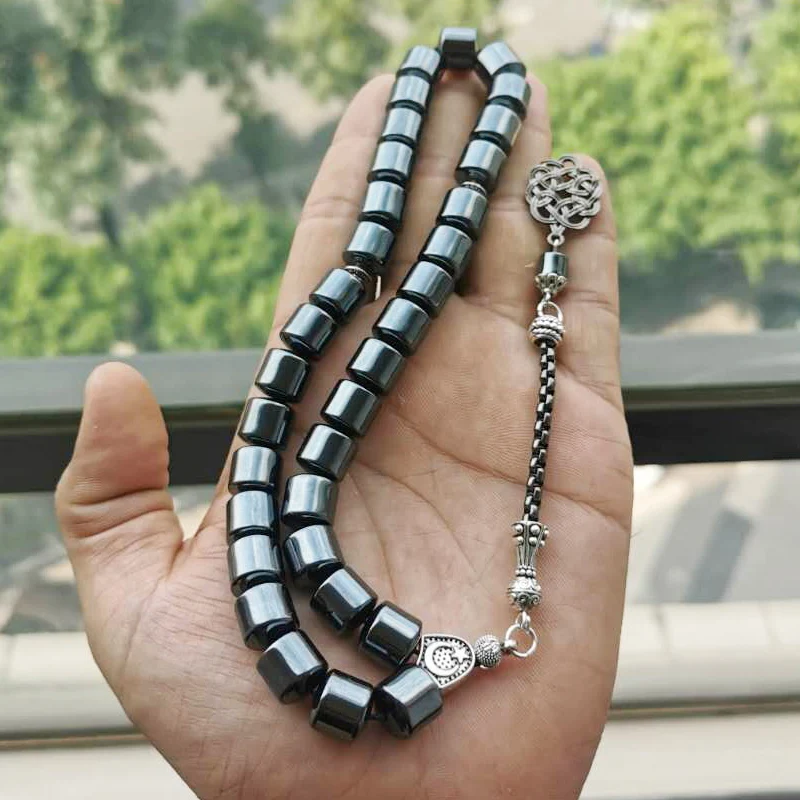 Подробные сведения о мисбахе Материал: натуральный гематит Металлическая кисточка: металл Вес четок: 138 грамм Ширина бусин: 10 мм Длина четки + кисточка: 31 см