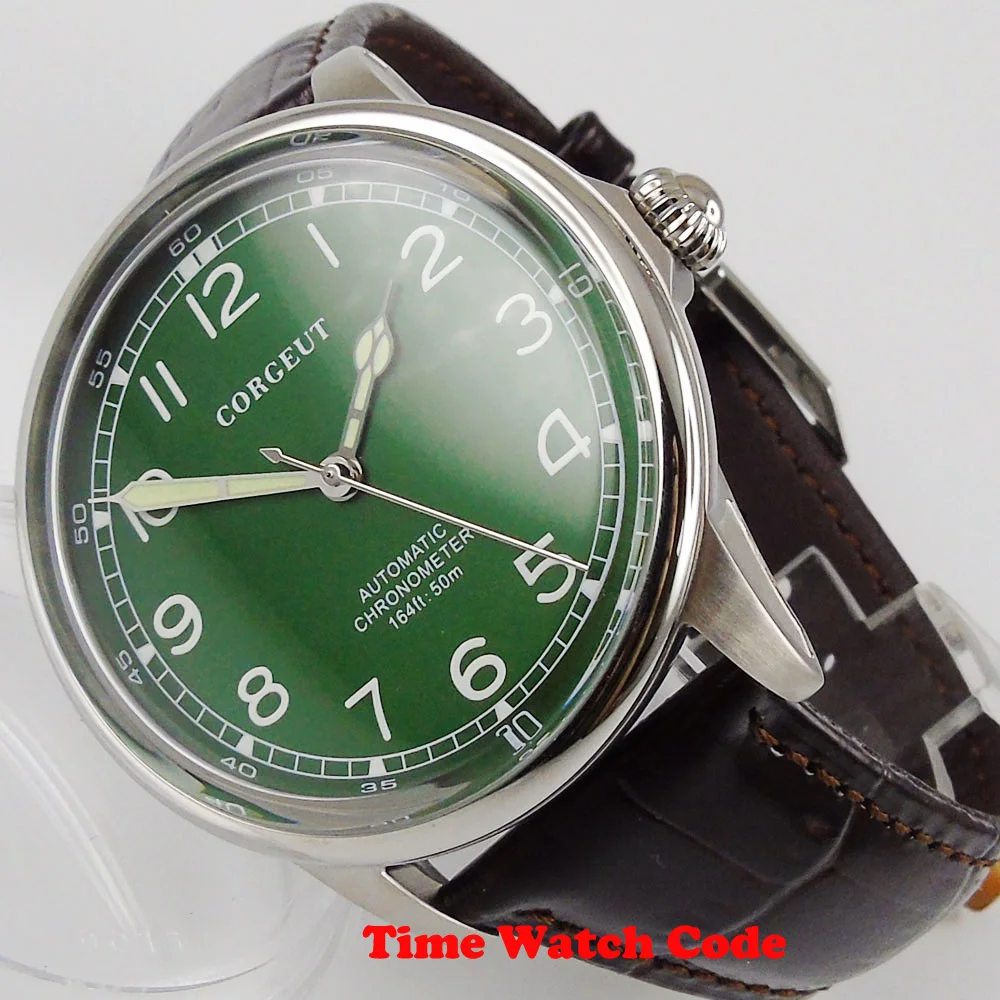-- Механизм: Чайка 1612 или Miyota 8215 механическое автоматическое движение. -Размер Чехла: 41 мм Диаметр без короны, толщина 13 мм -Материал чехла: нержавеющая сталь 316L с обратной связью (черный или серебристый) -Чехол для защиты: 3 АТМ водонепроницаемый -Циферблат: черный/зеленый/синий -- Размер ремешка: ширина 20 мм -Материал ремешка: черный или коричневый кожаный ремешок -- Тип застежки: застежка -- Стекло: специальное устойчивое к царапинам минеральное стекло