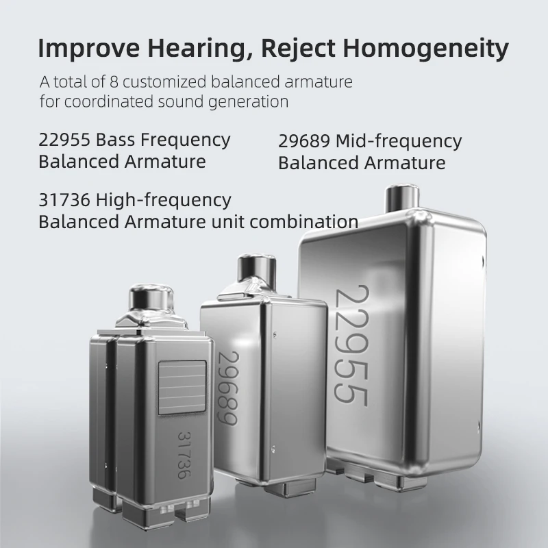 16. Драйвер: 8BA(22955 сбалансированная арматура x1 ,29689 сбалансированная арматура x1 , 31736 сбалансированная арматура комбинация блока x1)