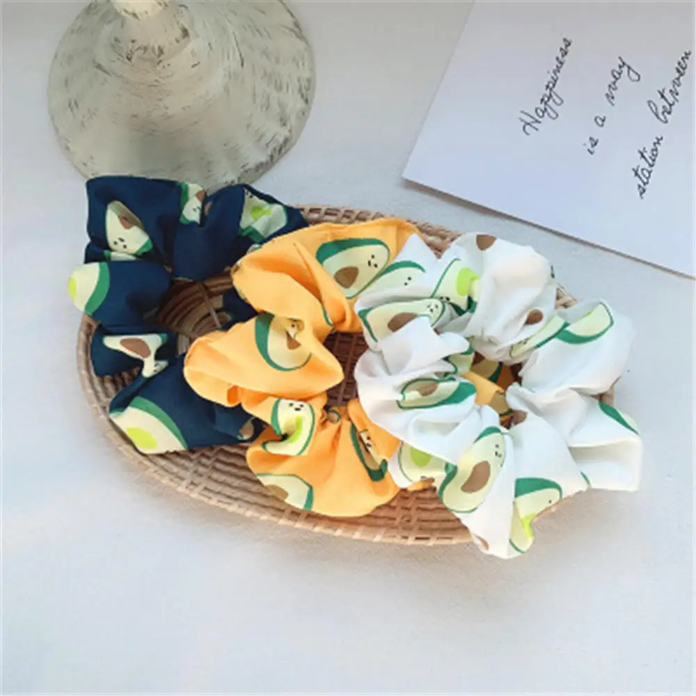 Name: Avocado Hair Ring Material: cotton and linen Weight: net weight about 8g Color: white, navy blue, yellow Package: 1 * hair circle