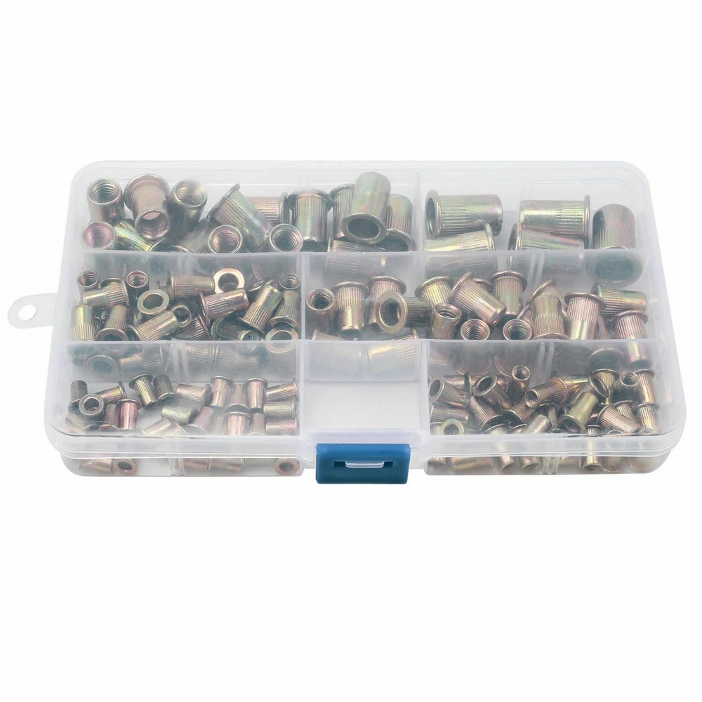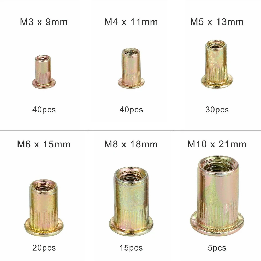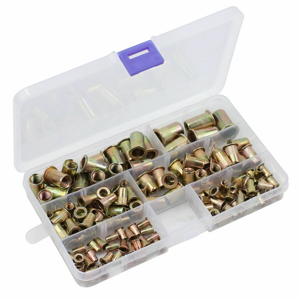 150 шт. заклепки гайка углеродистая сталь накатанные тела заклепки гайки комплект плоская головка резьбовые глухие заклепки гайка вставка Rivnut Запчасти для ремонта инструмента