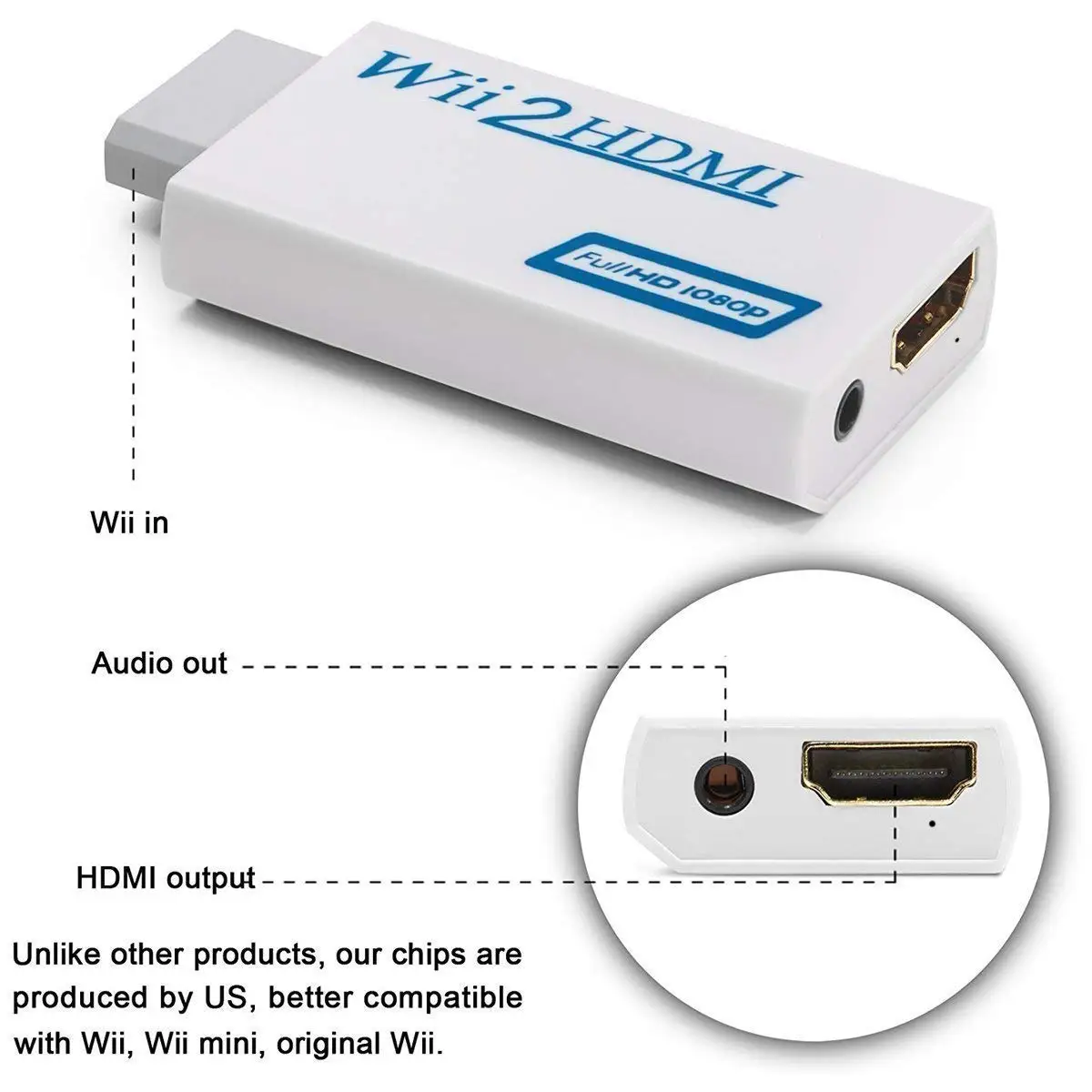 For Wii to HDMI Converter with 5ft High Speed HDMI Cable Wii2HDMI Adapter Output Video&o with 3.5mm Jack o, Support All