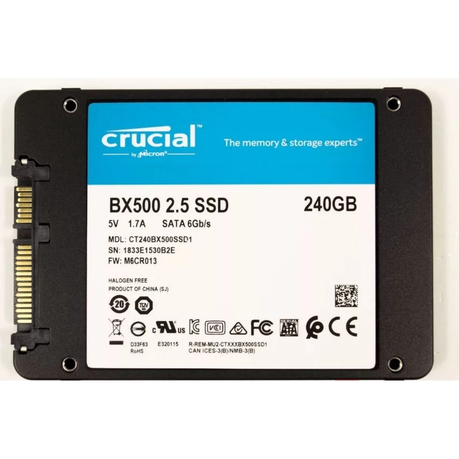Соответствующий 2.5-дюймовому форм-фактору SSD-накопитель Crucial BX500 может быть полезен владельцам стационарных и мобильных компьютеров. С высокой вероятностью модель подойдет для роли единственного диска в системе. Для подключения накопителя используется популярнейший интерфейс SATA III. Функционирует на базе широко распространенного контроллера Silicon Motion SM2258XT. Производителем применены чипы памяти TLC 3D NAND. Накопитель обеспечивает типовые для такого класса устройств показатели скорости работы с данными.