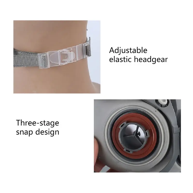 Маска с двойными картриджами с низким сопротивлением дыханию, компактным внешним видом, низкопрофильным дизайном, легче использовать с другими продуктами защиты труда.
