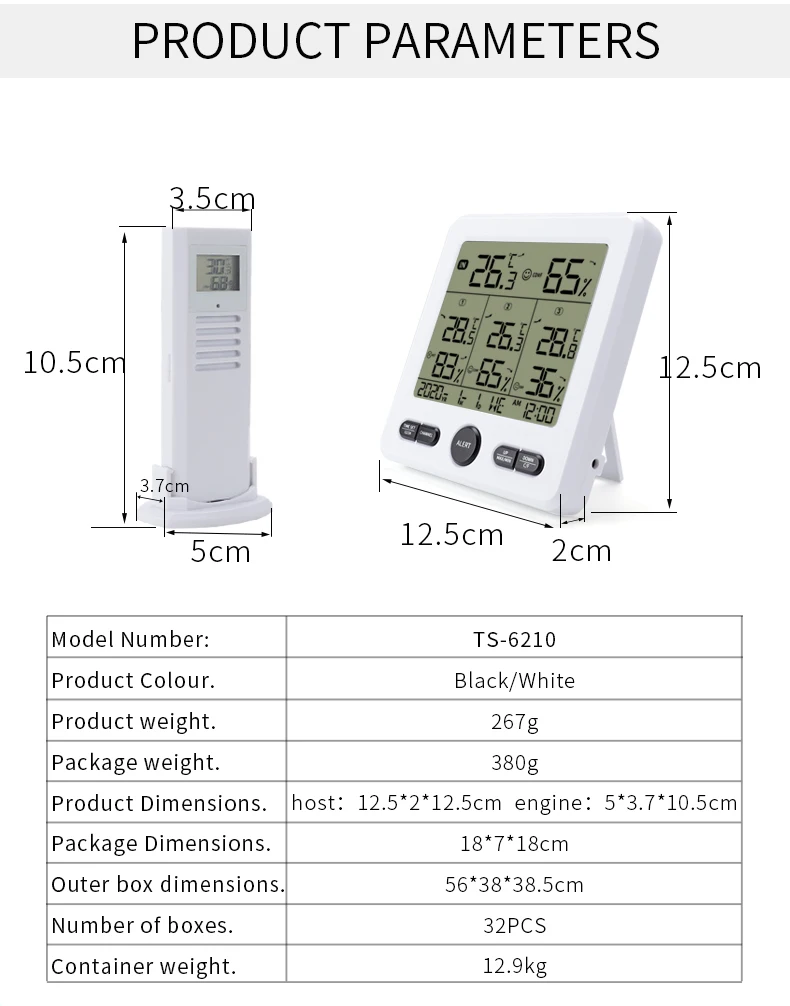 Источник питания: хост-3 * AAA батареи, каждый датчик-2 * AAA батареи (не включены)