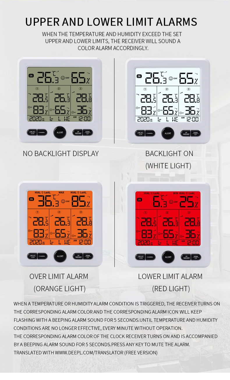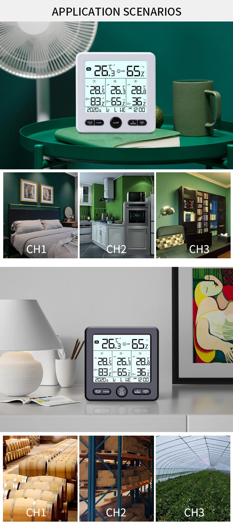 Домашняя метеостанция ЖК-дисплей Крытый максимальный предел сигнализации цифровой термометр гигрометр тренд метр 3 шт. беспроводной открытый датчик