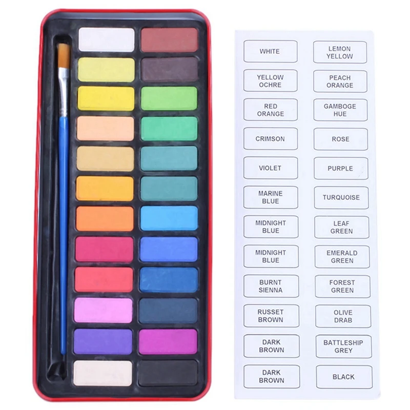 24 цвета сплошной акварельные пигменты для планшета набор и 3х прозрачный белый держатель для ручки, 12 отделений (белый)