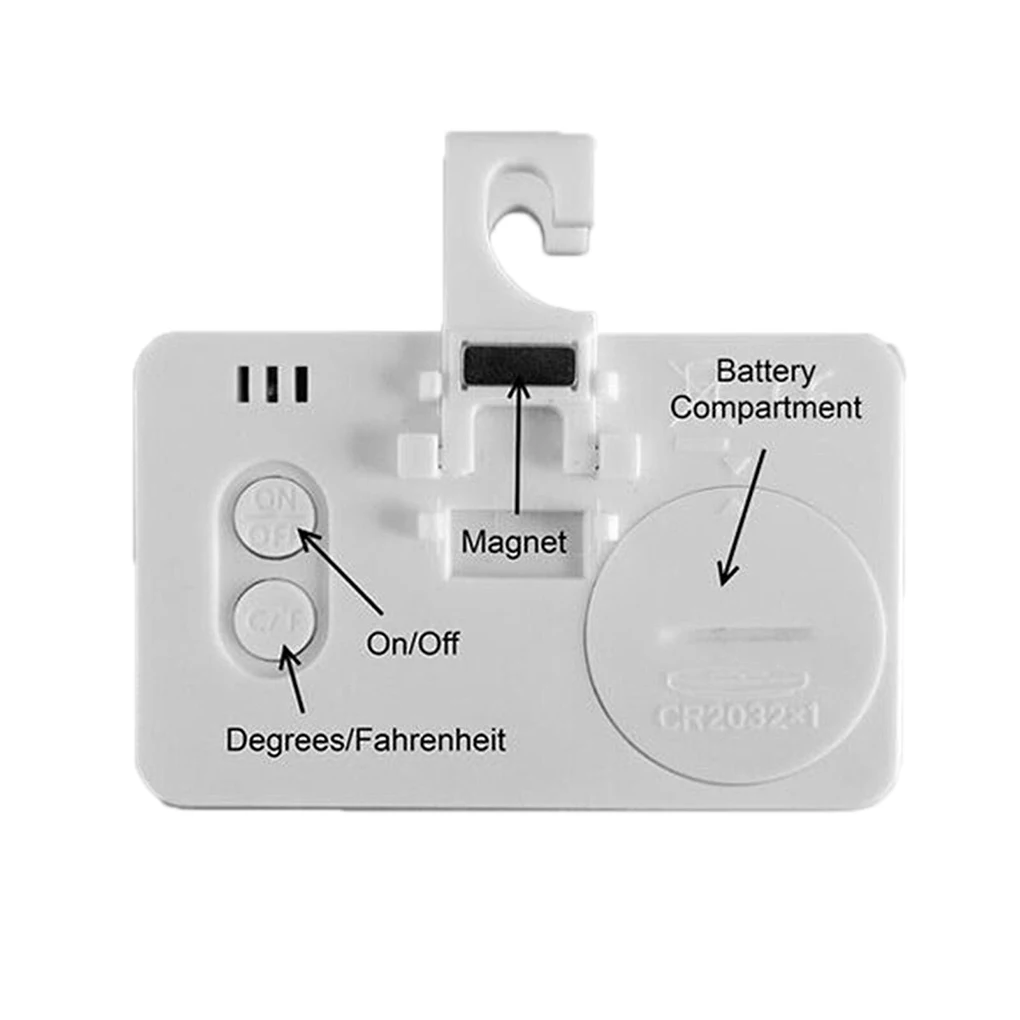 Аккумулятор термометра холодильника: 2x LR1130 батареи (не входят в комплект), когда экран предупреждает о низкой мощности, пожалуйста, обратите внимание на замену аккумулятора.