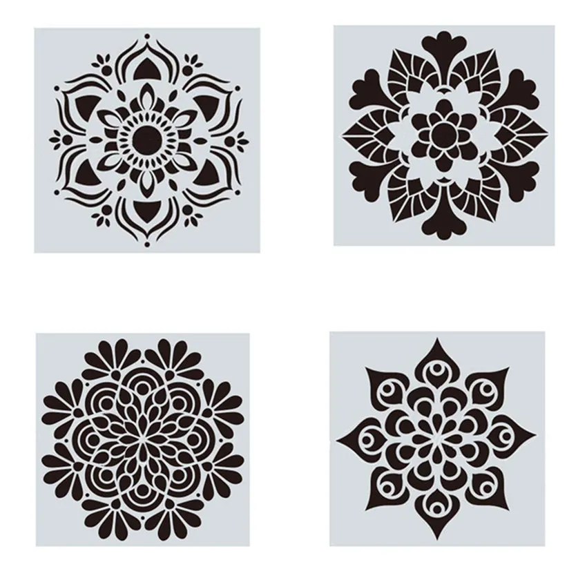 4 шт. 15X15 трафареты мандалы для деревянной плитки ткань настенный трафарет Инструменты для рисования DIY украшение дома рисунок лазерная резка шаблон