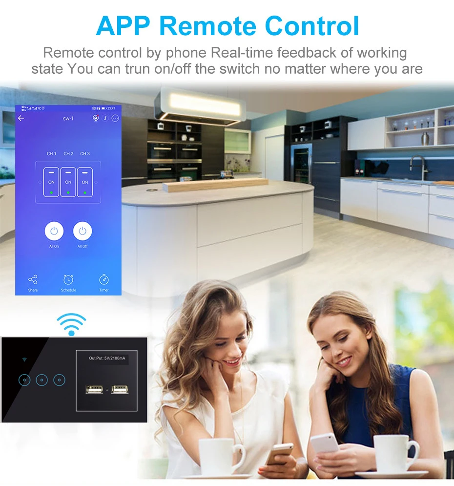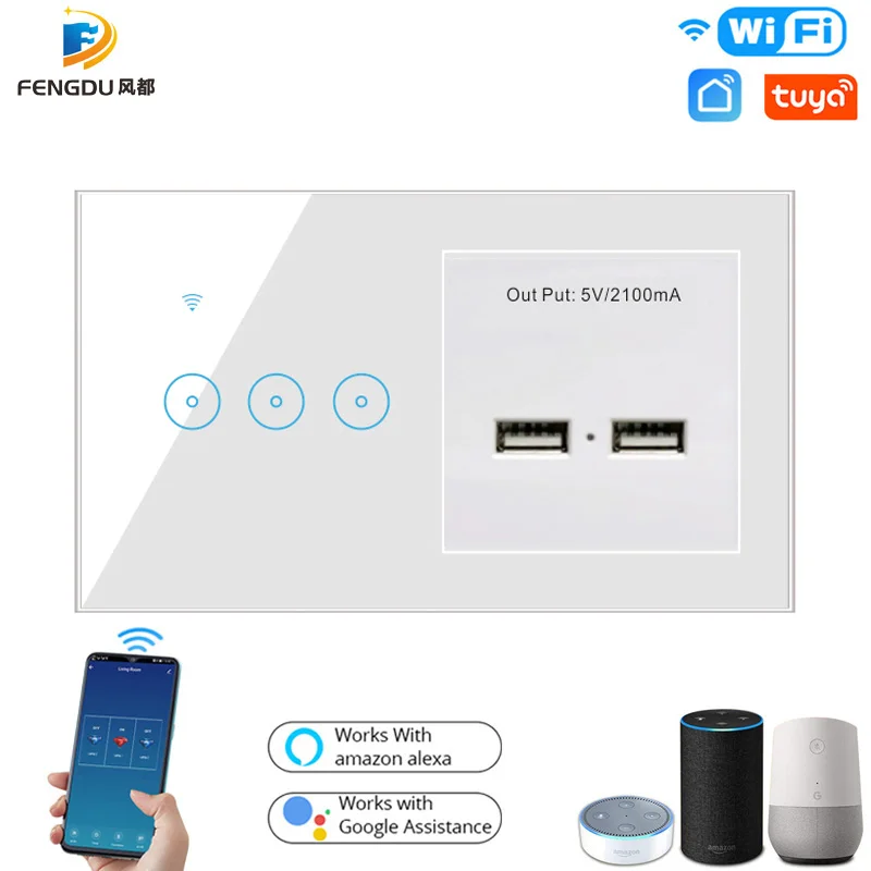 Wifi умный светильник, переключатель, стеклянная сенсорная панель, Голосовое управление, беспроводные Настенные переключатели, пульт дистанционного управления Alexa Google Home 1/2/3/Gang 2 USBs
