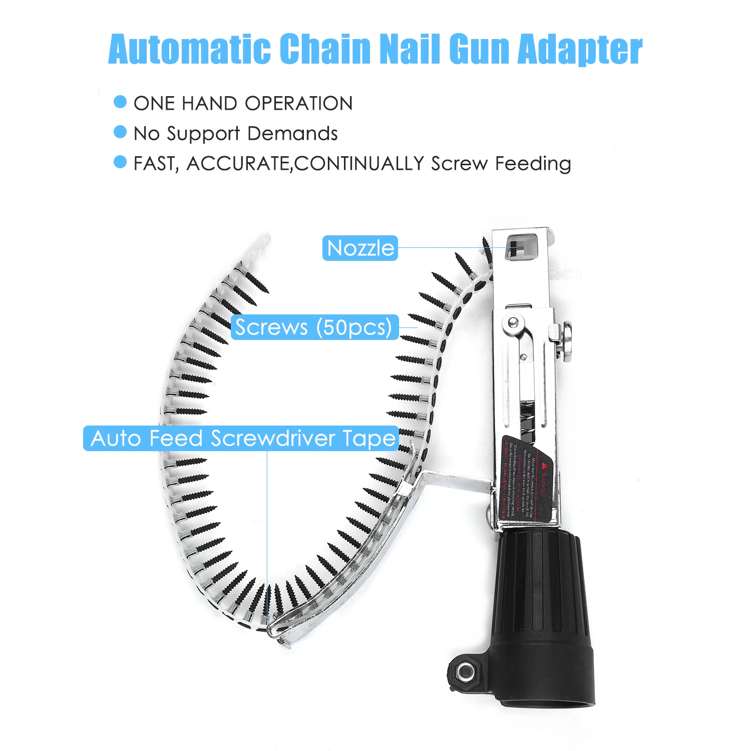 Автоматическая подача винтов-Автоматический Адаптер для пистолета гвоздя с 50 винтами, которые могут быстро, непрерывно и точно питаться гвоздями, легко работать одной рукой.