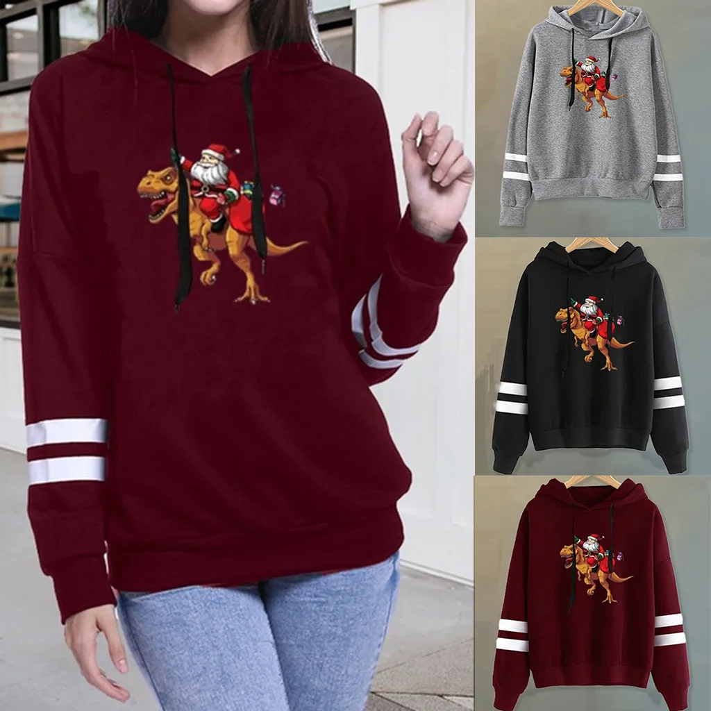 Женская толстовка в полоску с длинными рукавами и рождественским принтом; Свитер; Топы; Блузка