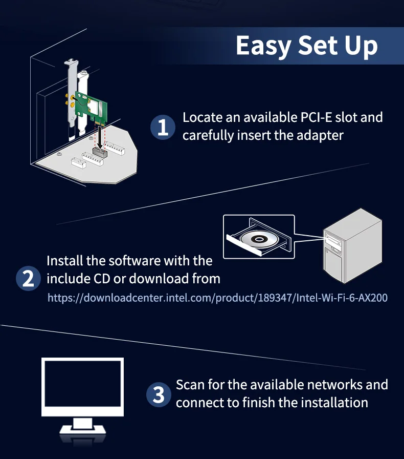 3000 Мбит/с двухдиапазонный 802.11ax/ac Wifi 6 AX200 Bluetooth 5.1 беспроводной адаптер