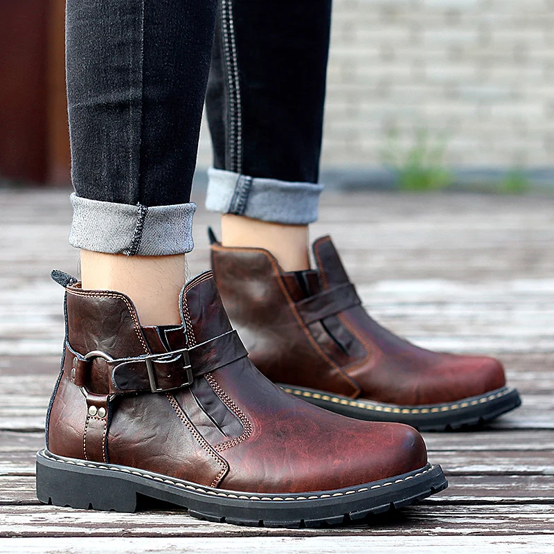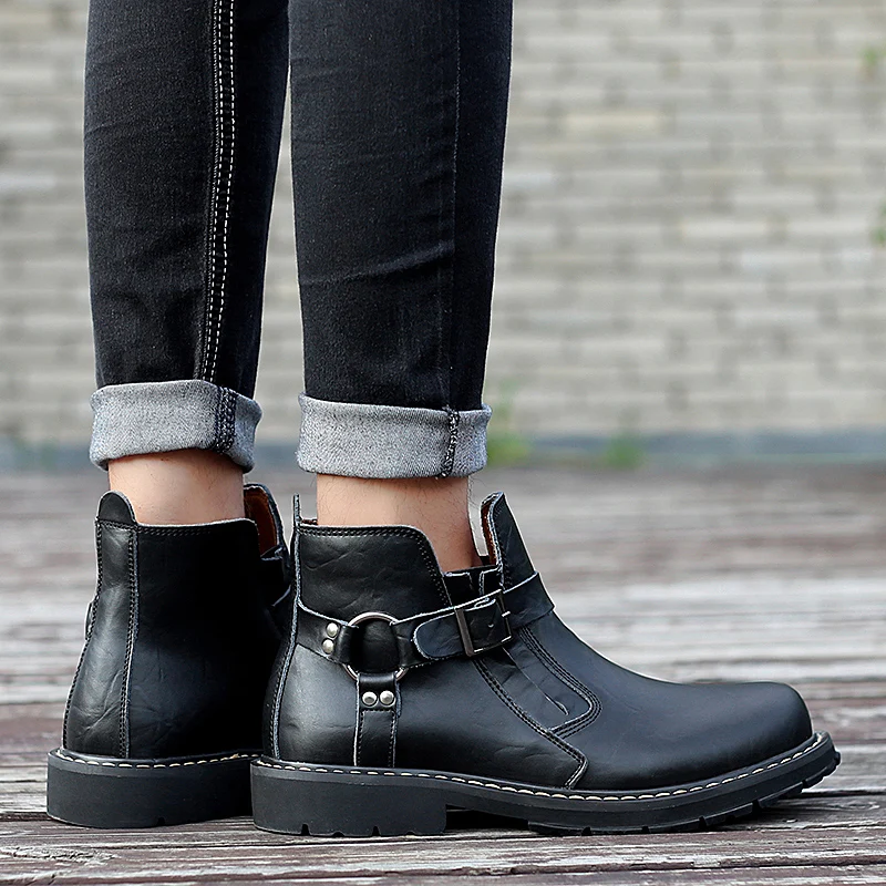 Новинка; Брендовые мужские ботинки; Сезон осень-зима; Мужская обувь из натуральной коровьей кожи; Модные ботинки в байкерском стиле; Удобные ботильоны; Повседневная обувь