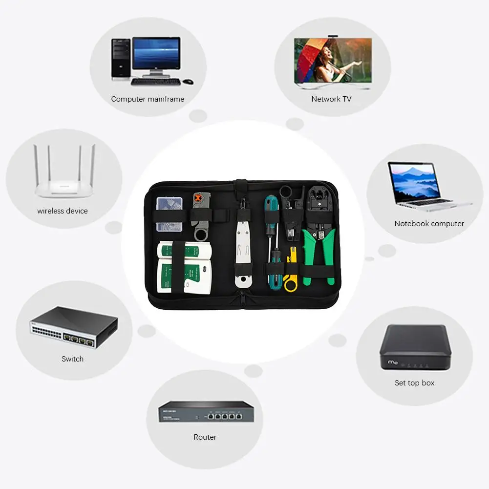 Область применения: RJ11/RJ45 обычный и сквозной разъем отверстия (сквозное отверстие Кристалл ЭЗ кристальная головка), может полоскать UTP/STP круг пары многожильный провод, плоская телефонная линия.