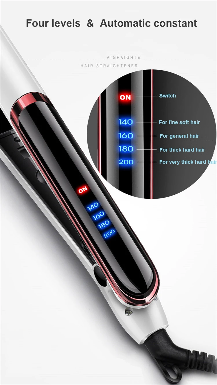 2. Самая большая разница с другими: 1. Это настоящая нагревательная пластина с керамическим покрытием. (Может защитить ваши волосы от повреждений из-за высокой температуры в то же время) 2. Удлиненная окаймляющая пластина позволяет быстрее восстанавливать волосы. (прищепка для густых жестких волос) Теплый совет: волосы каждого человека отличаются, и вы можете свободно выбирать температуру, которая вам подходит. Если это не ясно, вы можете попробовать с самой низкой температуры.
