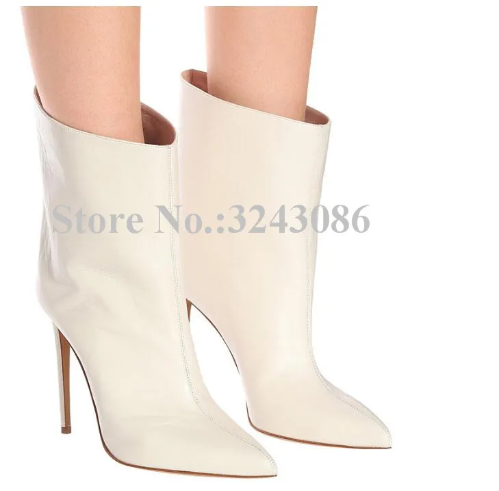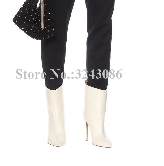 Женские белые кожаные полусапожки; Новинка; Женские ботильоны на шпильке с острым носком; Модные повседневные ботинки; Вечерние туфли; Прямая поставка; Большие размеры
