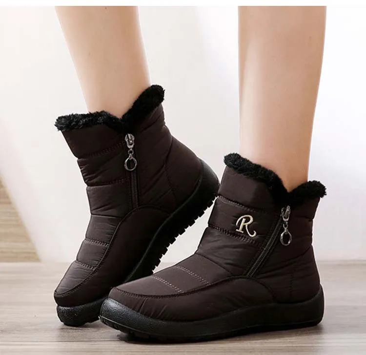 2020 зимние ботинки женская обувь женские зимние теплые ботинки на молнии для женщин, плюшевые меховые водонепроницаемые женские модные ботинки, большие размеры