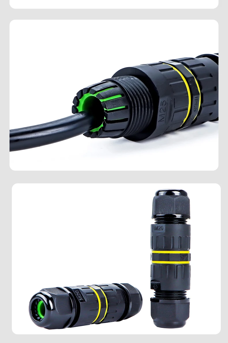 Модель: M20-2/3/4/5/6 Pin • Сила тока: 2/3/4Pin 24A Напряжение: 450 в Кабель Диаметр: 5,0-9,0 мм, 9,0-12 мм Опрессовки диапазоне: 2/3/4Pin 0,5-2,5 мм², 5/6Pin 0,3-1,5 мм² Уровень защиты: IP68 Сертификаты: CE ROHS TUV