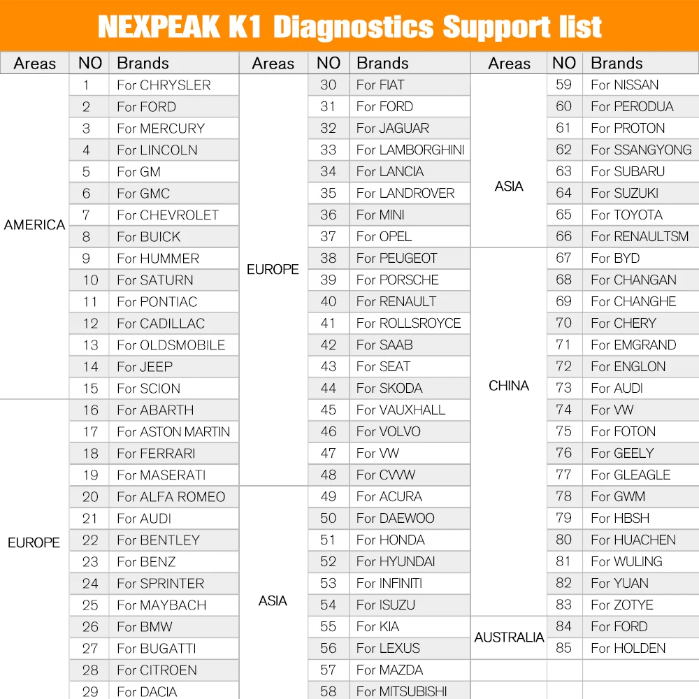 NEXPEAK K1 PRO OBD2 автомобильный диагностический инструмент Поддержка автомобилей на специальных функциях