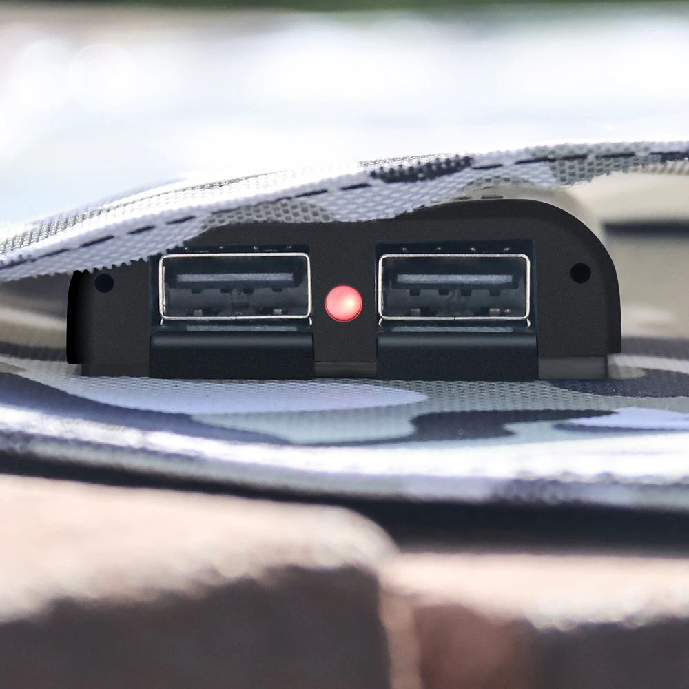 Солнечная панель и внешняя ткань являются водонепроницаемыми, но обратите внимание, что Интерфейс usb не является водонепроницаемым, пожалуйста, обратите внимание на защиту.