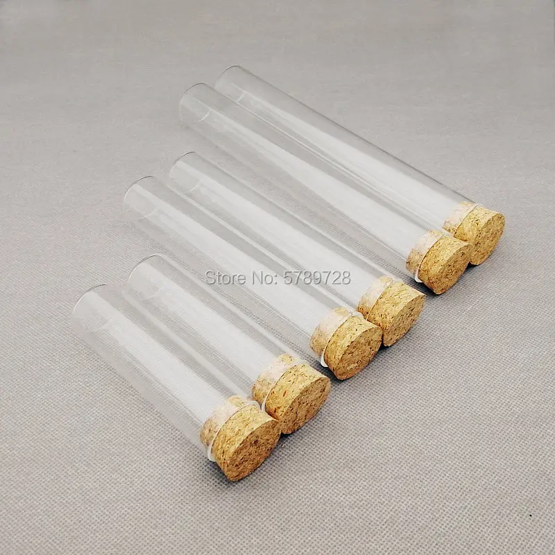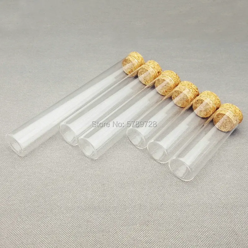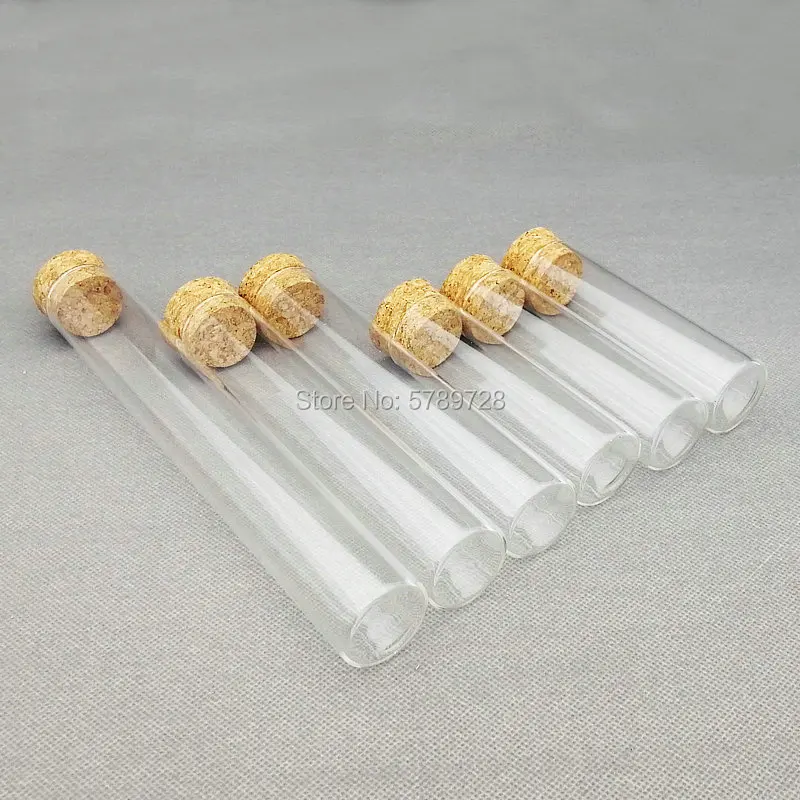 Item: Glass test tube with cork Material: Glass Type: Flat bottom USES: Used in school chemistry LABS as a reaction vessel for small amounts of reagents
