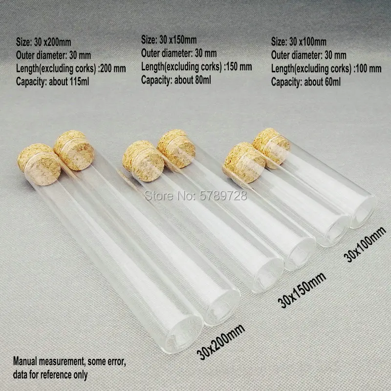 Outer diameter 30mm flat bottom Glass test tube with cork stopper,Lab Thickened glass reagent reaction vessel