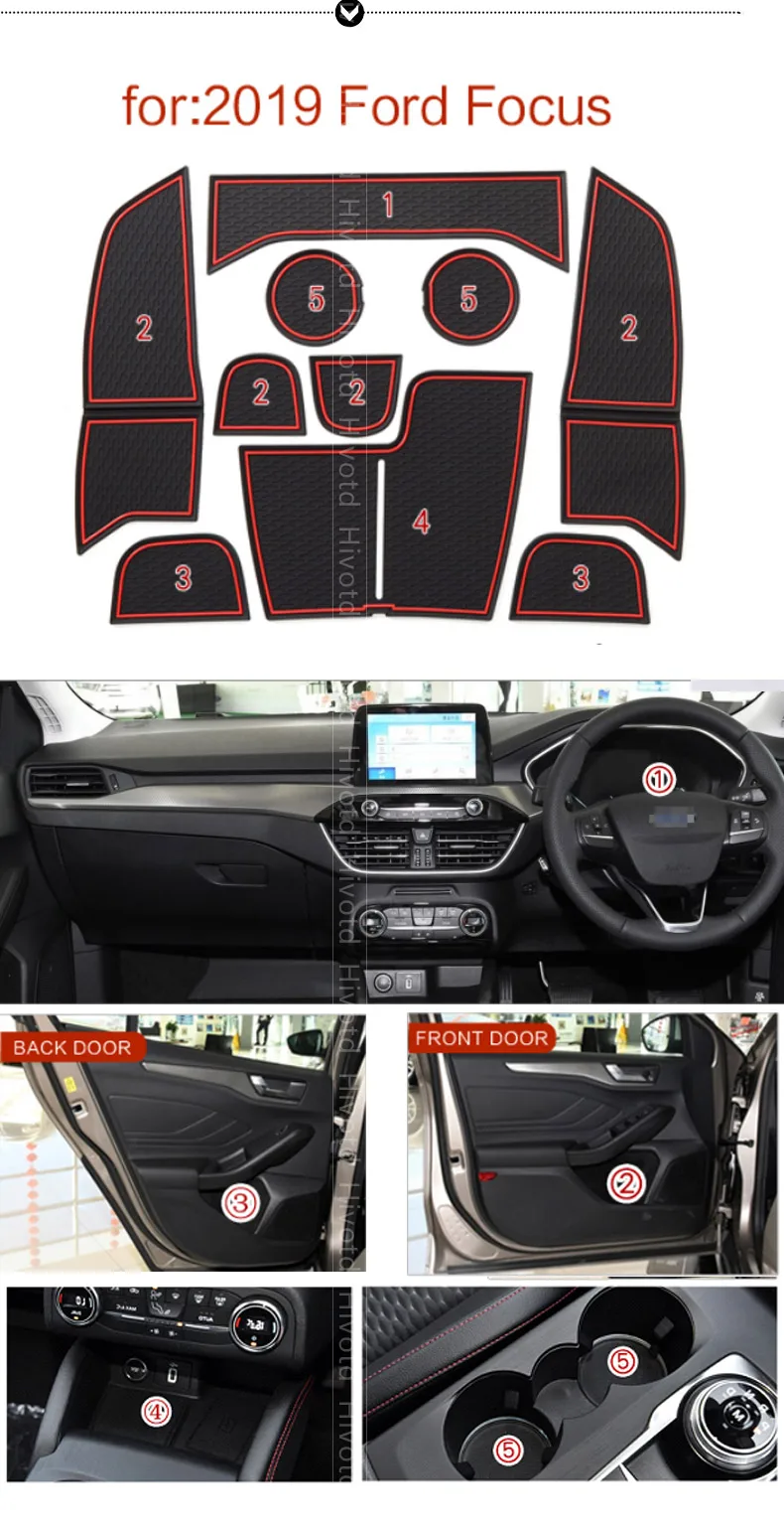 10 шт., автомобильный Стайлинг, интерьерный нескользящий коврик, коврик для двери, подушка, резиновый коврик, подходит для Ford Focus bussiness MK4, 2019-2020
